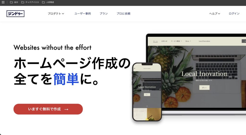 無料Webサイトは完全無料のサービスというよりは、ホームページ作成サービスの無料プランという位置付けがほとんどです。代表的なものにはWixやJimdoが挙げられます。