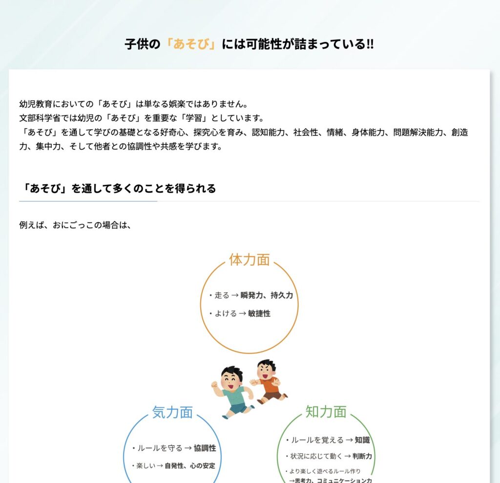 3歳〜12歳のゴールデンエイジに運動させることがいかに大事かという点を強調し、またスタッフの方の体験談を交えることで保護者に対して説得力のある文章になりました。